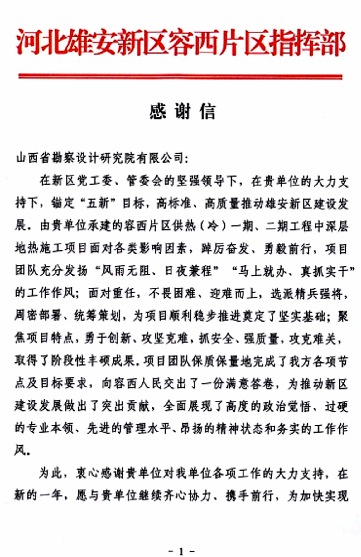 雄安容西片区供热(冷)一期、二期工程中深层地热井项目