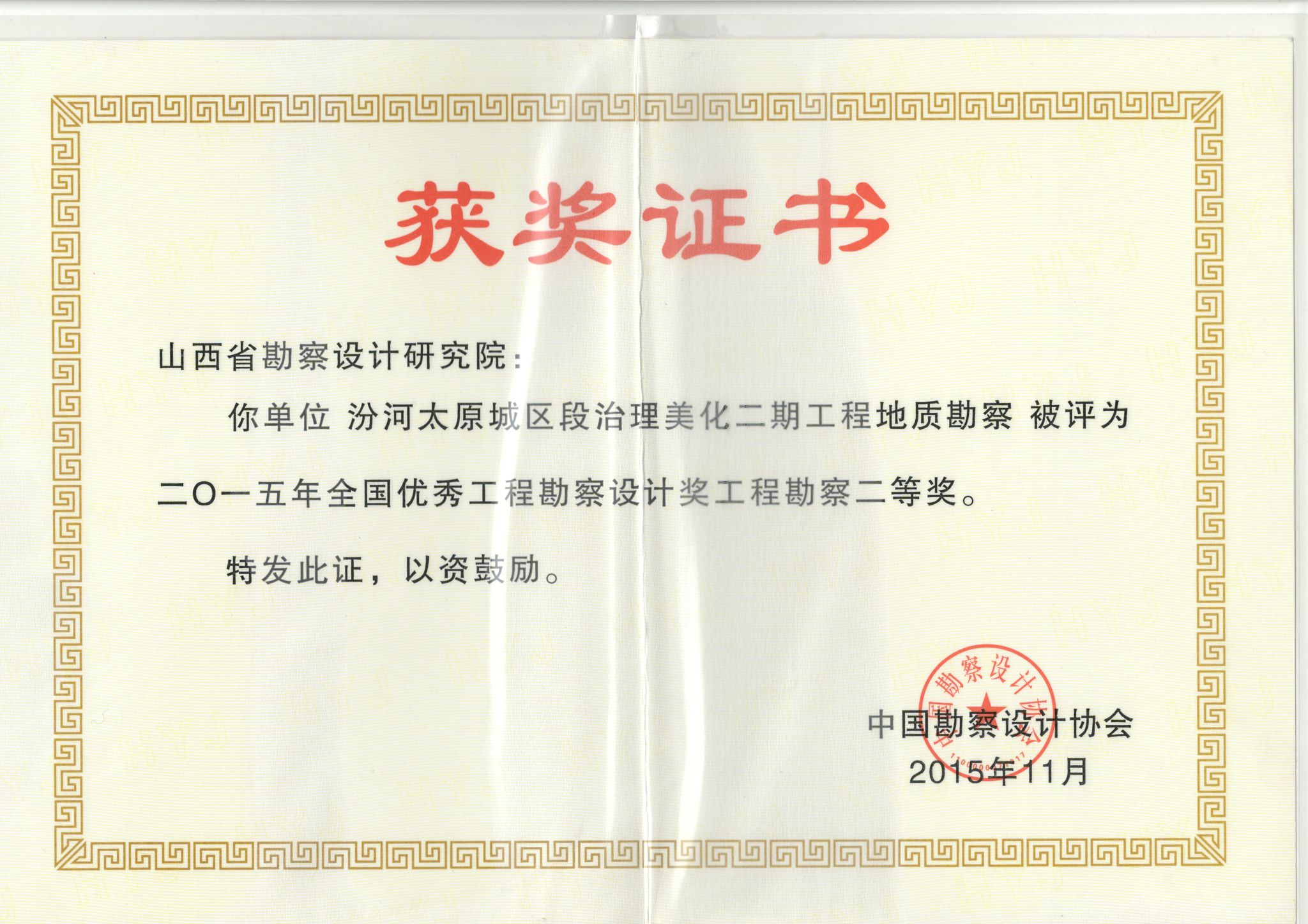 汾河美化二期工程中勘协二等奖